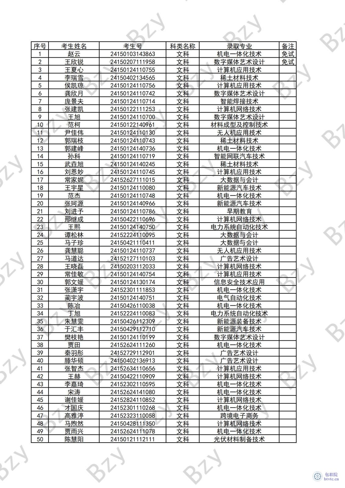 1.【文科】2024年单独招生考试拟录取名单公示