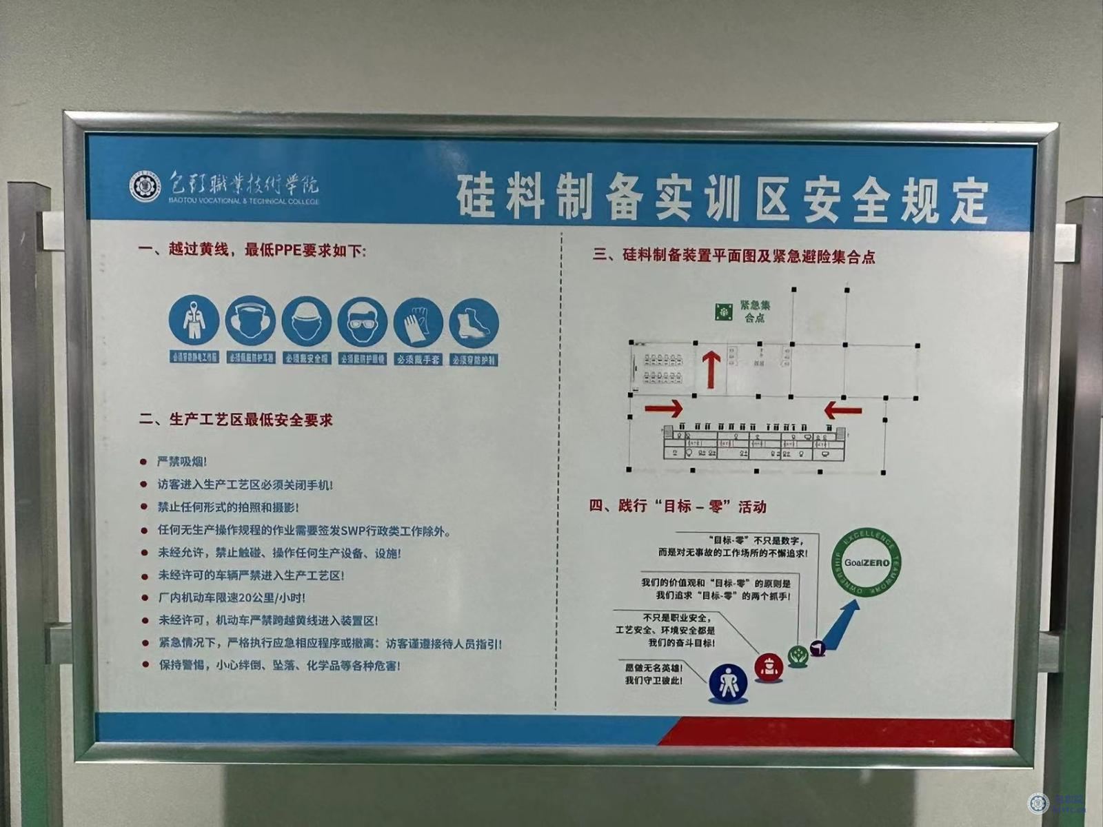 包头职业技术学院建设包头市光伏新能源实训基地,依据光伏新能源产业链条,从矿石到清洁光电,突出上中下游全产业链对接;融入新技术、新产业、新经济带来的新知识与新技能,精准对接企业实际生产需求,建成光伏新能源产业展厅;硅料制备实训中心、单晶拉棒实训中心、切片实训中心、电池组件生产与装配实训中心、光伏电站智能运维实训中心;大学生创新创业平台、光伏科研创新平台。加速产业链、教育链、人才链和创新链的有机融合,提高服务光伏新能源产业切合度。
