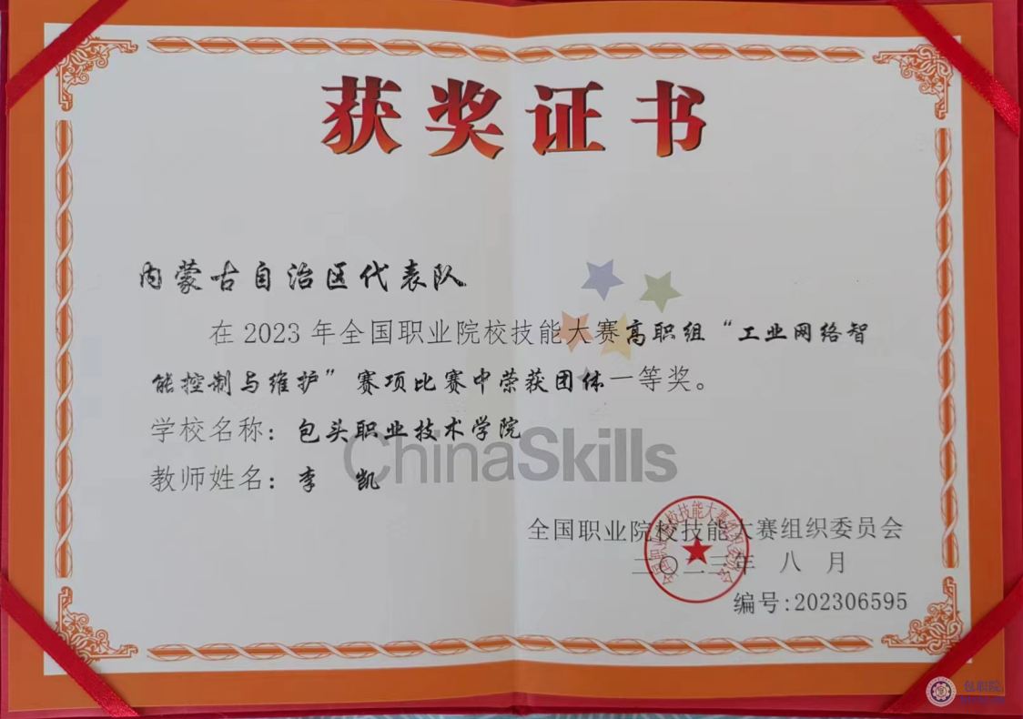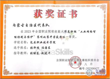 2 | 冯海东 | 2023.8 | 全国职业技能大赛“工业网络智能控制与维护”赛项 | 一等奖 |