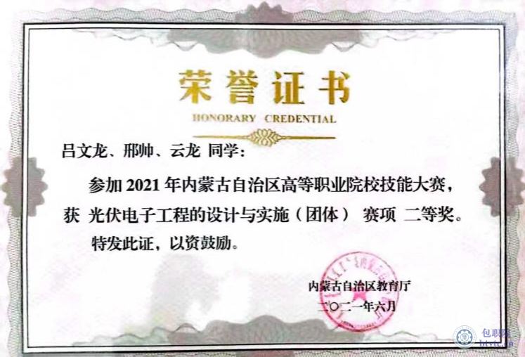 比赛获奖证书 风力发电系统安装与调试技能大赛开幕式