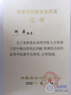 教学团队中有学院专业带头人5人,学院骨干教师14人,都是“双师型”教师,包头市“5512工程”中青年骨干人才2人。