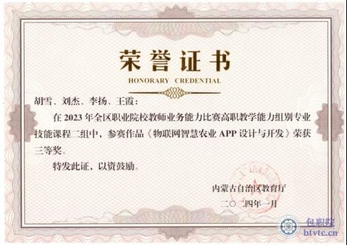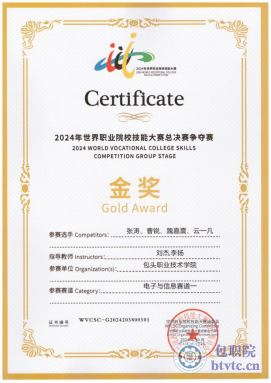 2024年获得世界职业院校技能大赛高职组电子信息赛道一物联网应用开发赛项金奖。