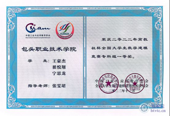 2.2021年获得全国大学生数学建模大赛全国一等奖,在全国高职院校中名列前茅