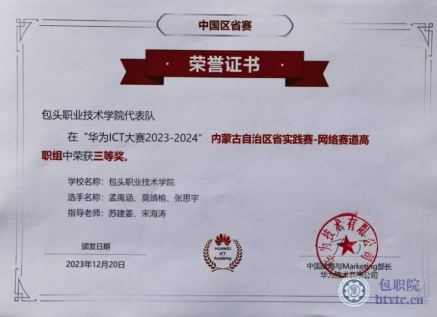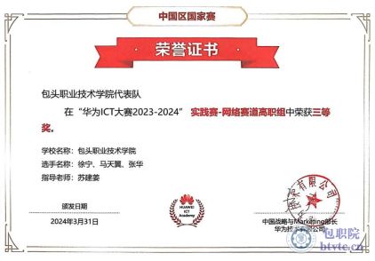 “华为ICT大赛2023-2024”内蒙古自治区省实践赛-网络赛道高职组中三等奖