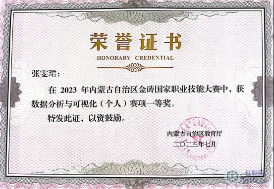 2023年金砖国家技能大赛数据分析与可视化赛项国际总决赛三等奖;