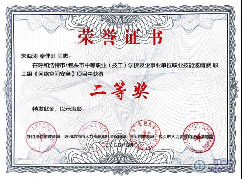 2024年呼和浩特市·包头市中等职业(技工)学校及企事业单位职业技能邀请赛职工组《网络空间安全》项目中二等奖