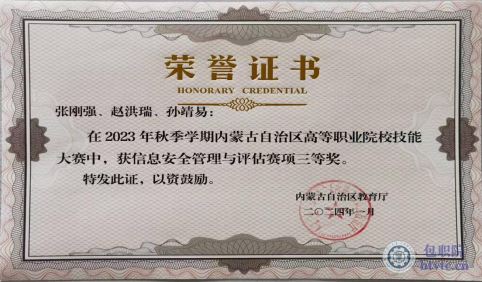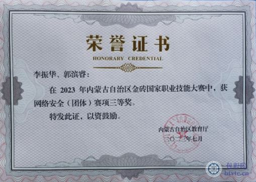 2023年内蒙古金砖国家职业技能大赛网络安全(团体)赛项三等奖。