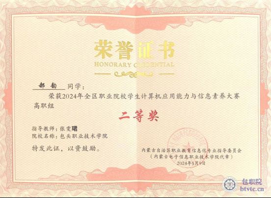 2024年全区职业院校学生计算机应用能力与信息素养大赛高职组自治区二等奖