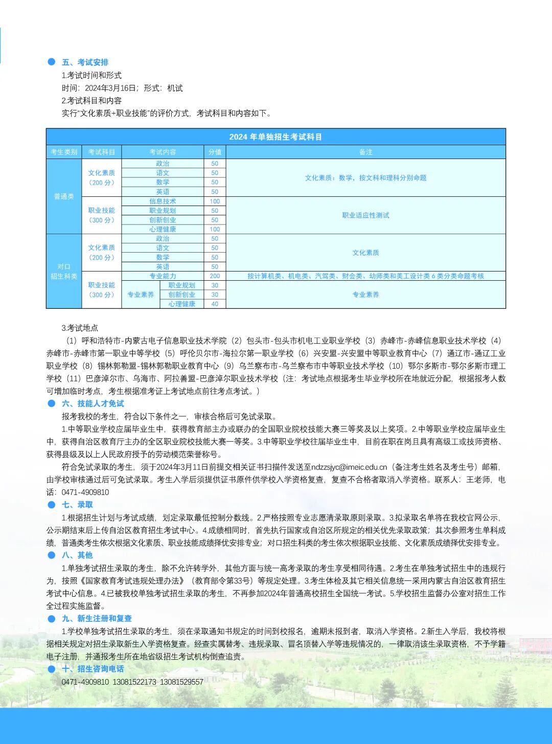 内蒙古电子信息职业技术学院2024年单独考试