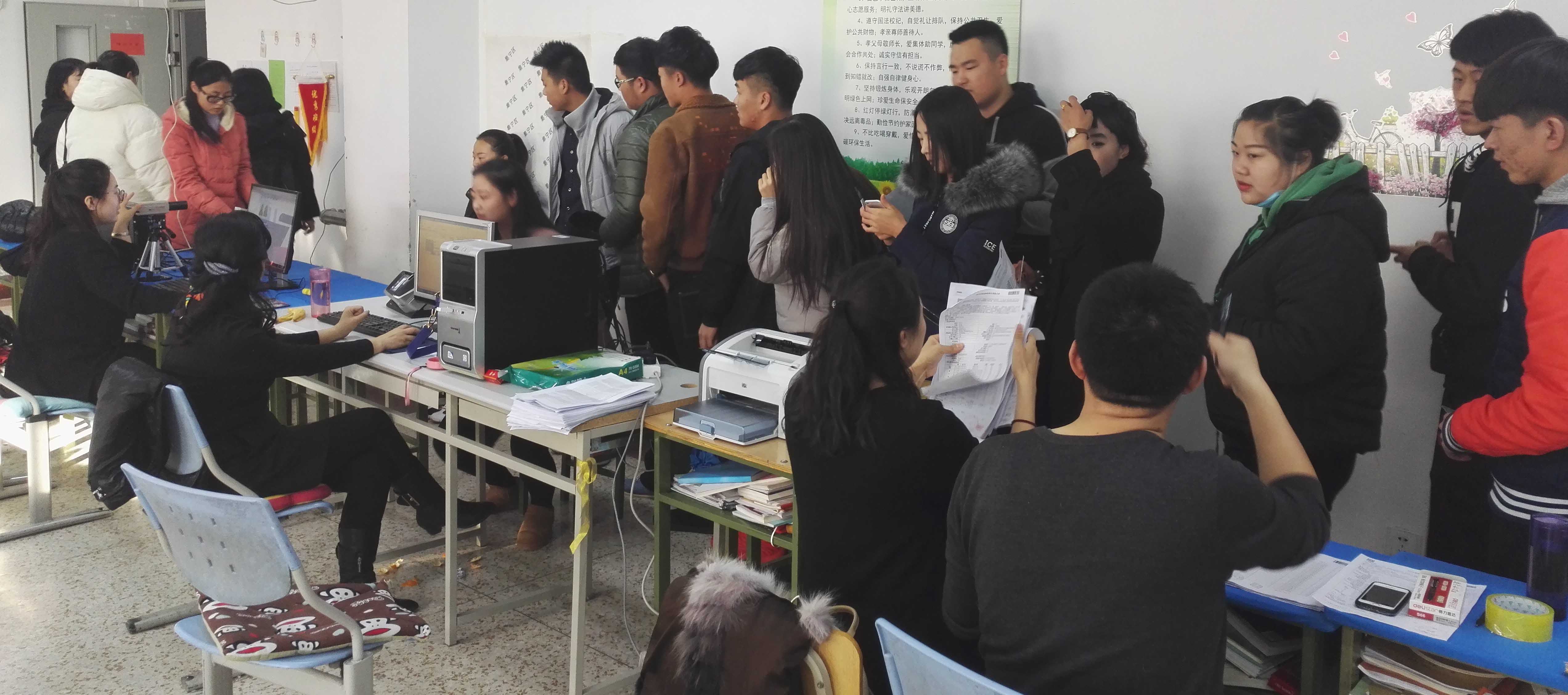 2016年12月1日到3日经过三天紧张的工作3日下午五点年我2017年“3+2”五年制转段、中职对口升学报名工作在我院附属中等专业学校和各系部师生的配合下圆满结束,本次报名工作集宁区招办的工作人员主动到学校为学生服务,整个过程秩序井然,没有出现一点漏洞。共计有490名“3+2”五年制转段和中职对口升学的学生成功完成网上报名、照相和指静脉验证工作。