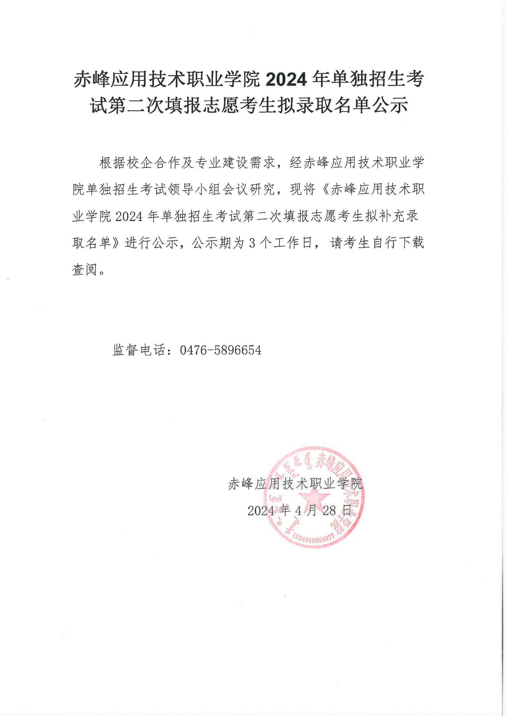 附件:赤峰应用技术职业学院2024年单独招生考试第二次填报志愿考生拟补充录取名单.xlsx