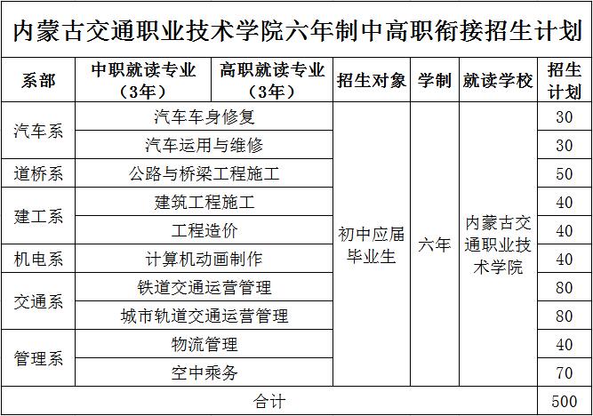3.报考我院六年(3+3)中高职衔接班的学生,须拿本人身份证、初中毕业证自行来内蒙古交通职业技术学院招生工作处进行正式报名。