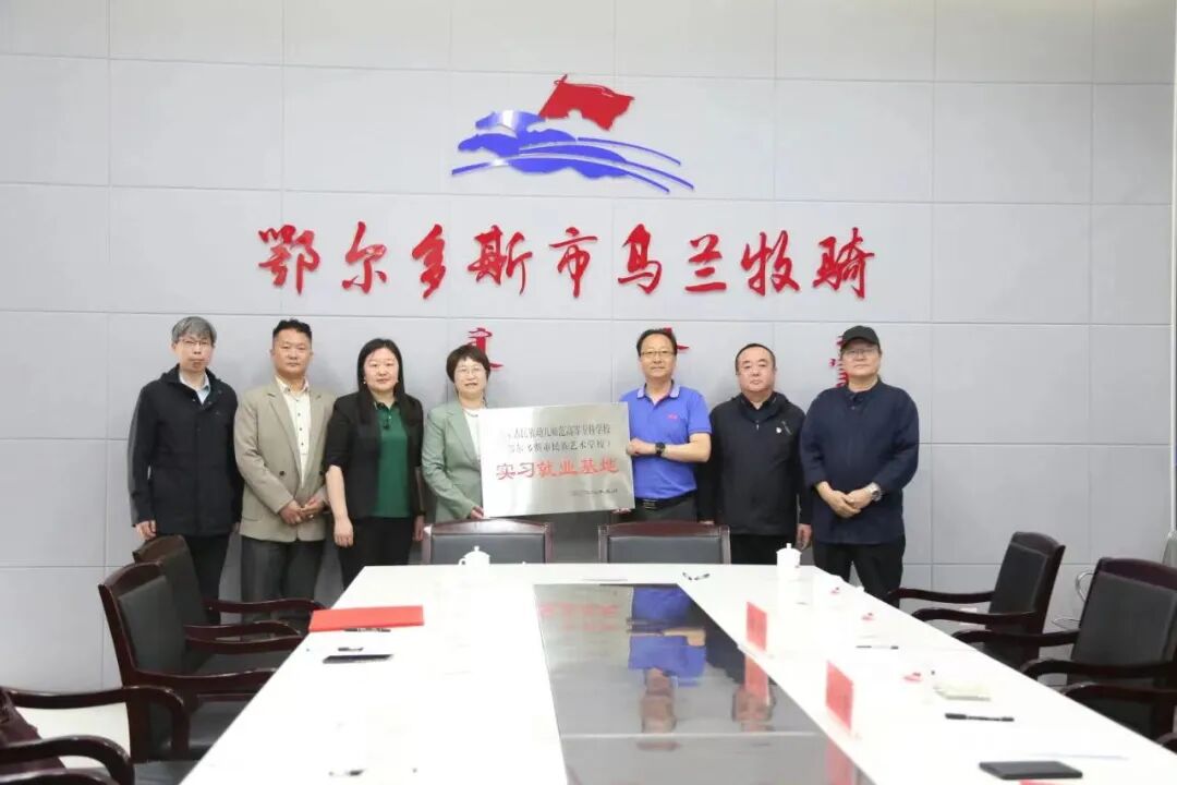 校外与鄂尔多斯市乌兰牧骑、东胜区乌兰牧骑、伊金霍洛旗乌兰牧骑、鄂托克旗乌兰牧骑、鄂托克前旗乌兰牧骑、杭锦旗乌兰牧骑、乌审旗乌兰牧骑、达拉特旗乌兰牧骑、准格尔旗乌兰牧骑等建立实习就业基地。深化产教融合校企合作,推动职业教育高质量发展。