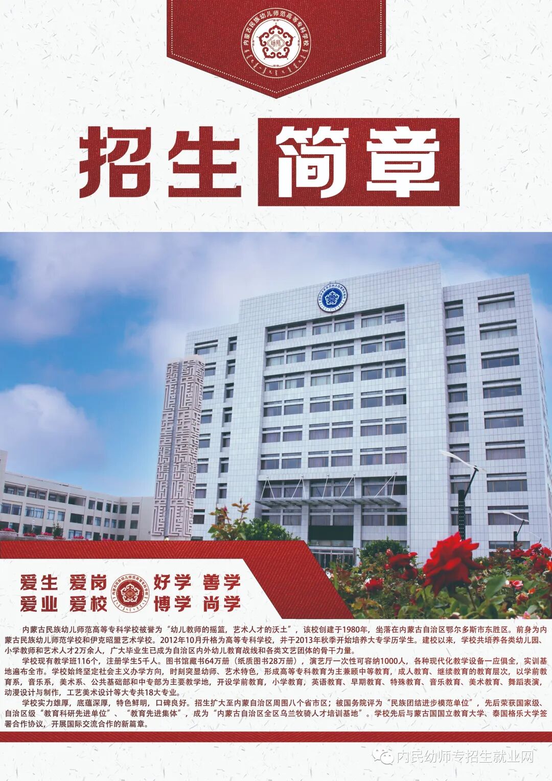内蒙古民族幼儿师范高等专科学校音乐舞蹈系成立于2013年,前身为内蒙古民族幼儿师范学校与伊克昭盟艺术学校合并而成的艺术科;办学四十余载,培养了多名优秀编导与演员,严谨的教学、文化的传承与积淀得到用人单位、艺术类兄弟院校的高度认可与肯定。2018年,由内蒙古自治区文化和旅游厅组织正式挂牌为“内蒙古自治区乌兰牧骑人才培训基地”,同年加入“鄂尔多斯乌兰牧骑联盟”共创“乌兰牧骑实训基地”,开展各类“请进来,走出去”的学习培训活动,随后成立“校园乌兰牧骑”,组织师生参加各类国家级、省部级等大型演出活动,如:永远跟党走”民族地区职业院校学生才艺教学成果汇报演出、全国少数民族传统体育运动会开幕式、鄂尔多斯市首届残疾人运动会开幕式及春晚等,弘扬乌兰牧骑优良传统,服务基层人民群众,立足于区域文艺事业发展,有效提升影响力与美誉度。2022年,音乐系正式更名为音乐舞蹈系,并加入“中国艺术职业教育学会”,积极参与各类展演与科研活动,为本系各专业的可持续发展开启新篇章。