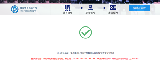 4.完成报名后,点击查看报名信息(登录账号为:2020加身份证号;初始密码为:身份证后六位)