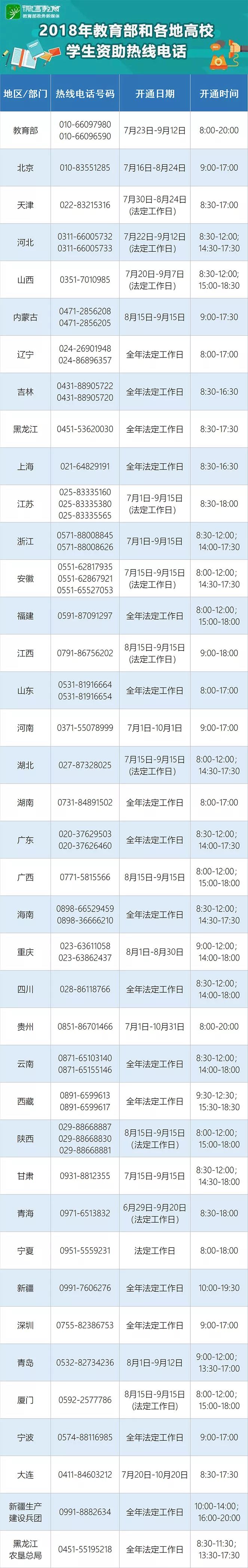 2018年教育部和各地高校学生资助热线电话,戳图查看↓↓↓