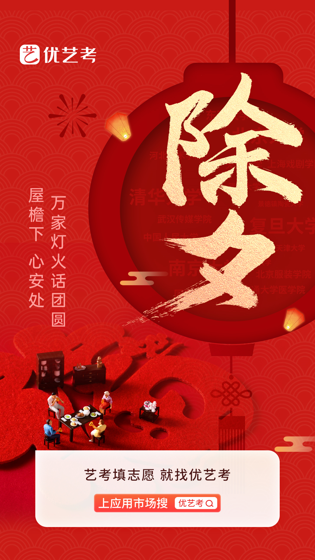 屋檐低垂,星光点点,万家灯火映照着人间的温情。心安之处,便是家的方向。除夕佳节,优艺考祝所有考生以行求知,不负韶华,走向人生更辉煌的明天!