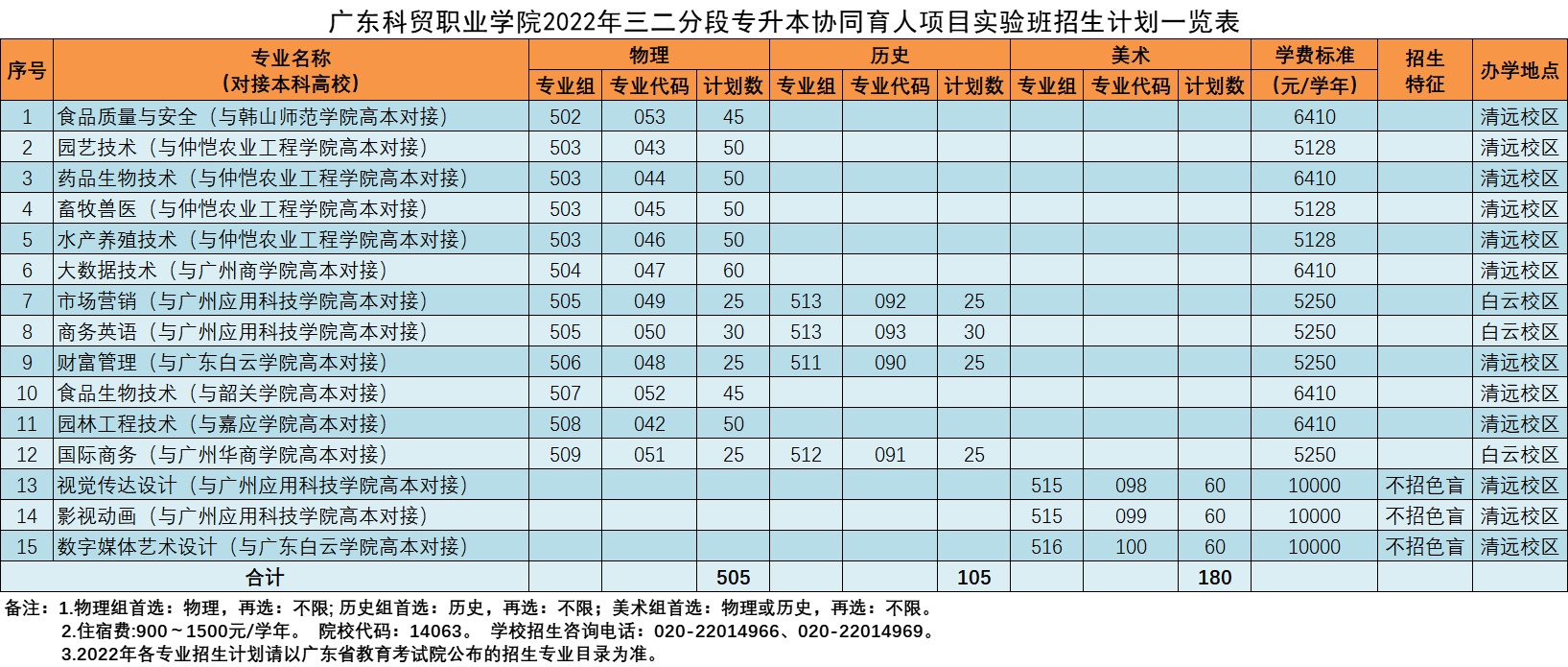 2022年我校三二分段专升本协同育人项目实验班招生计划一览表