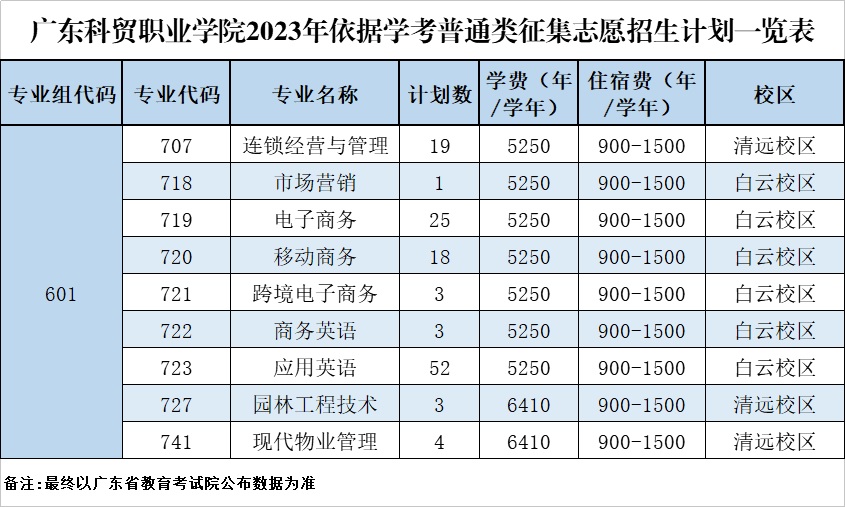 广东科贸职业学院2023年春季高考依据学考征集志愿计划