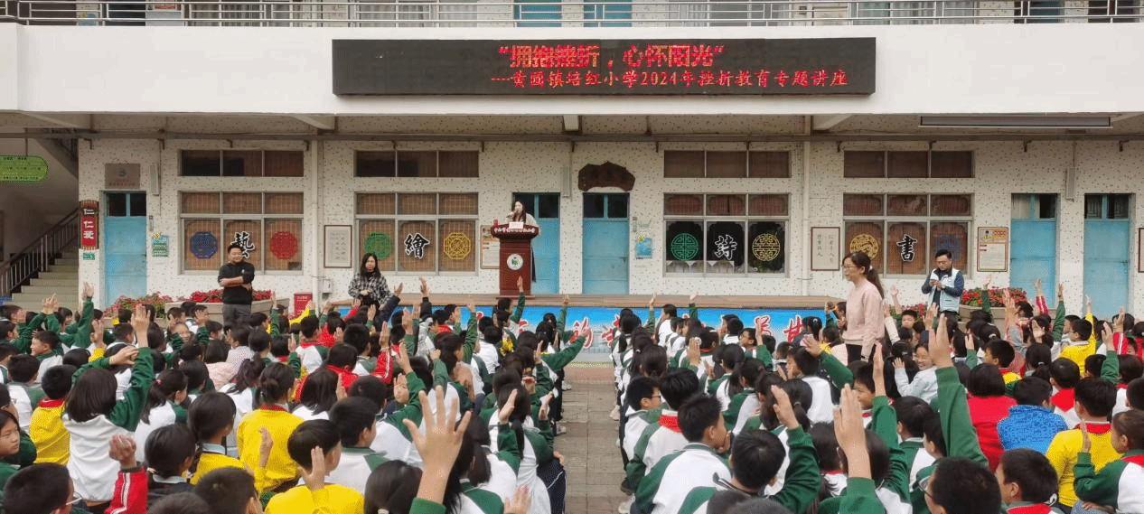 近日,我校联合培红小学共同推进“家—校—社”协同育人工作,特别邀请了中山火炬开发区中心小学心理学教师黄欣,为3-6年级的1600余名学生及各班班主任带来了一场主题为“拥抱挫折,心怀阳光”的挫折教育讲座。