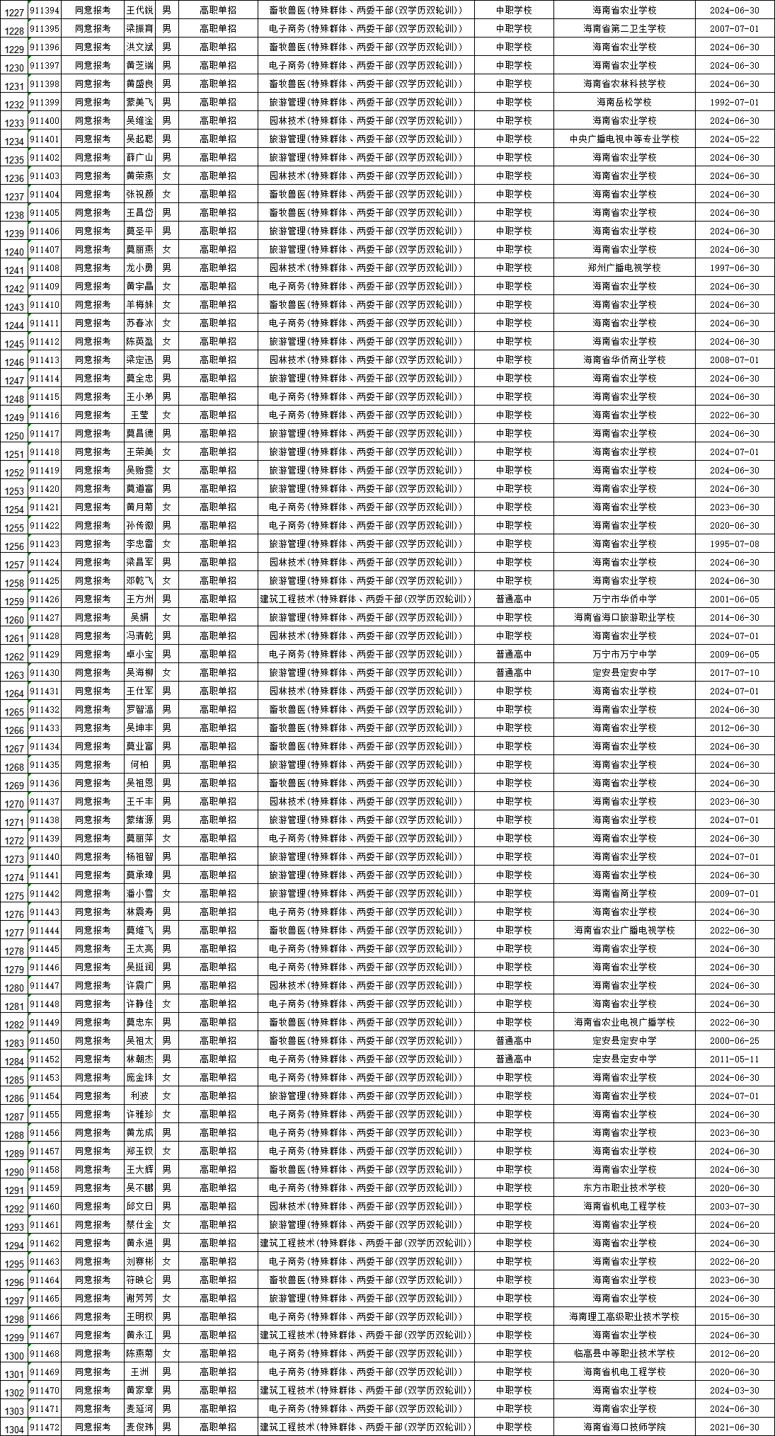 海南职业技术学院2025年海南省高职分类招生考试报名资格审查汇总表