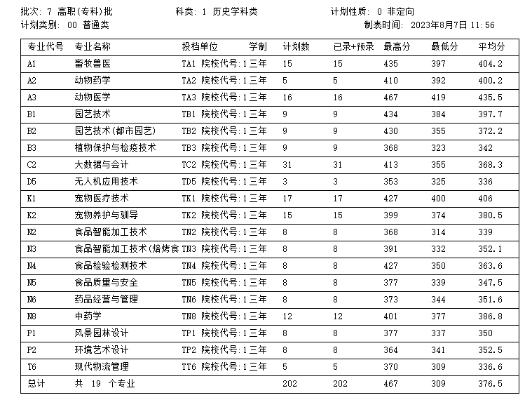 辽宁农职院2023年辽宁省高考分专业录取分数线(历史学科类)