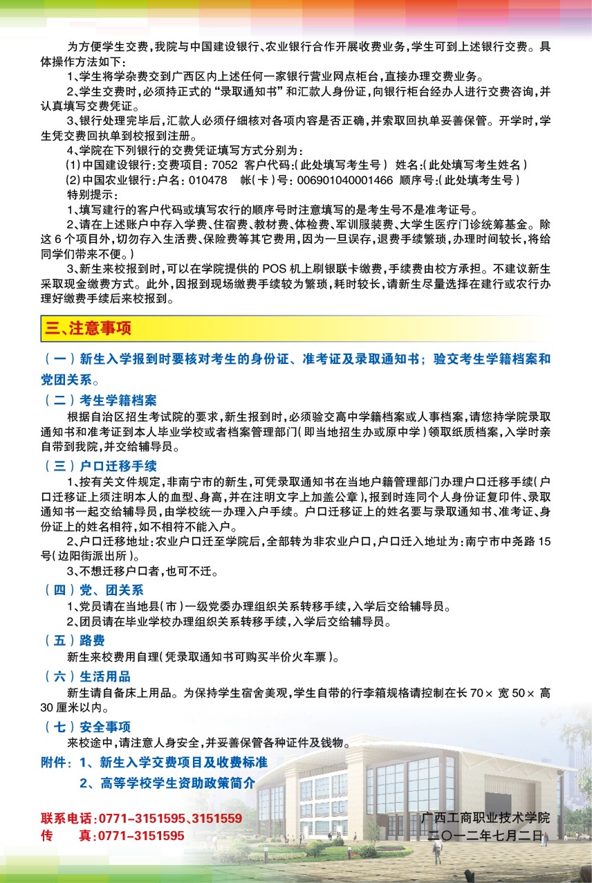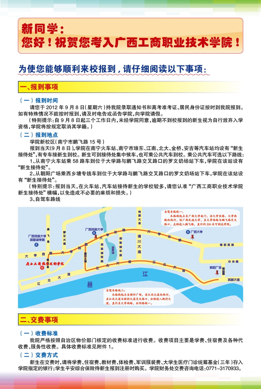 广西工商职业技术学院2012年新生入学须知