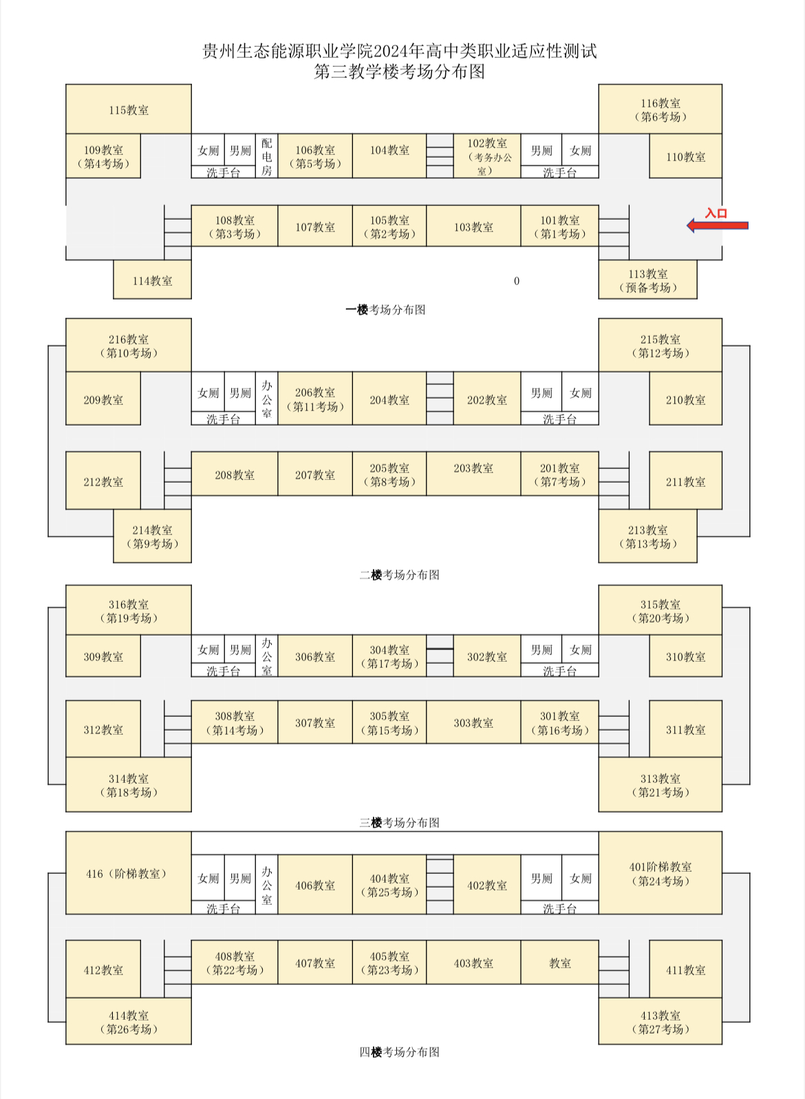 2024分类考试职业技能(适应性)测试高中类考场指示图和考场分布图