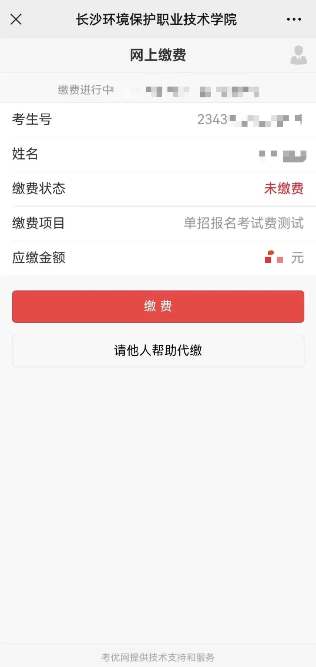 温馨提示:支付前查看收款方是否为“长沙环境保护职业技术学院”,如果不是应立即停止付款,并电话告知我校。