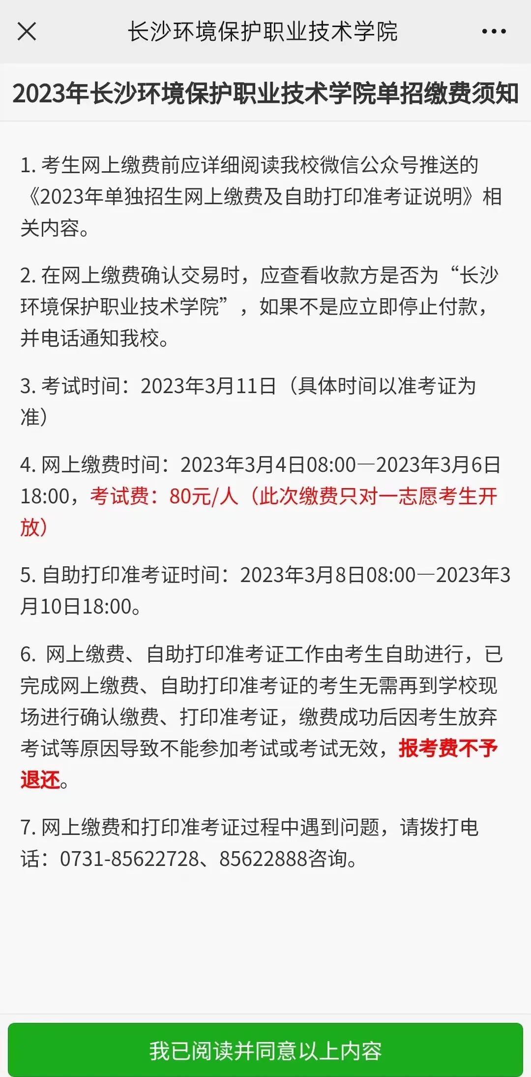 2.请考生关注“长沙环保职院招就处”微信公众号,缴费后在规定时间内打印准考证。