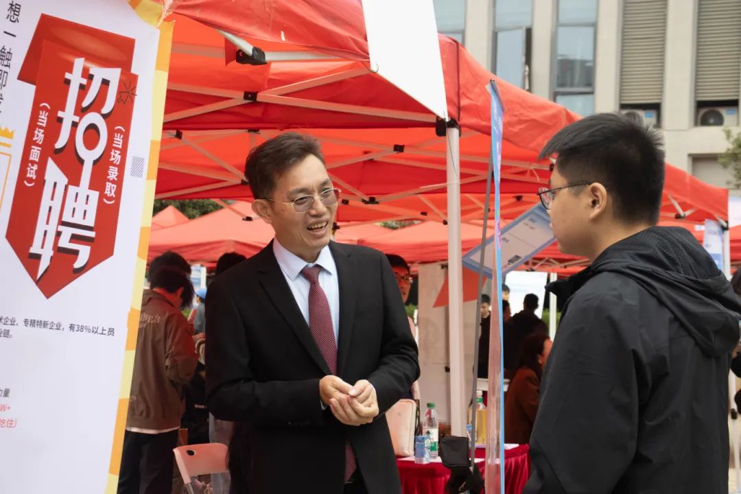 开幕式后,校领导走访各企业展位,与用人单位热情交流,悉心了解他们的招聘需求和对学校人才培养的建议。并与前来求职的毕业生进行了亲切交流,询问同学们的求职情况及求职意愿,并鼓励大家积极面对就业形势,精准把握自身优势和定位,坚定求职信念,勇于展示自我才华,敢于争取心仪岗位,争取找到理想的工作。