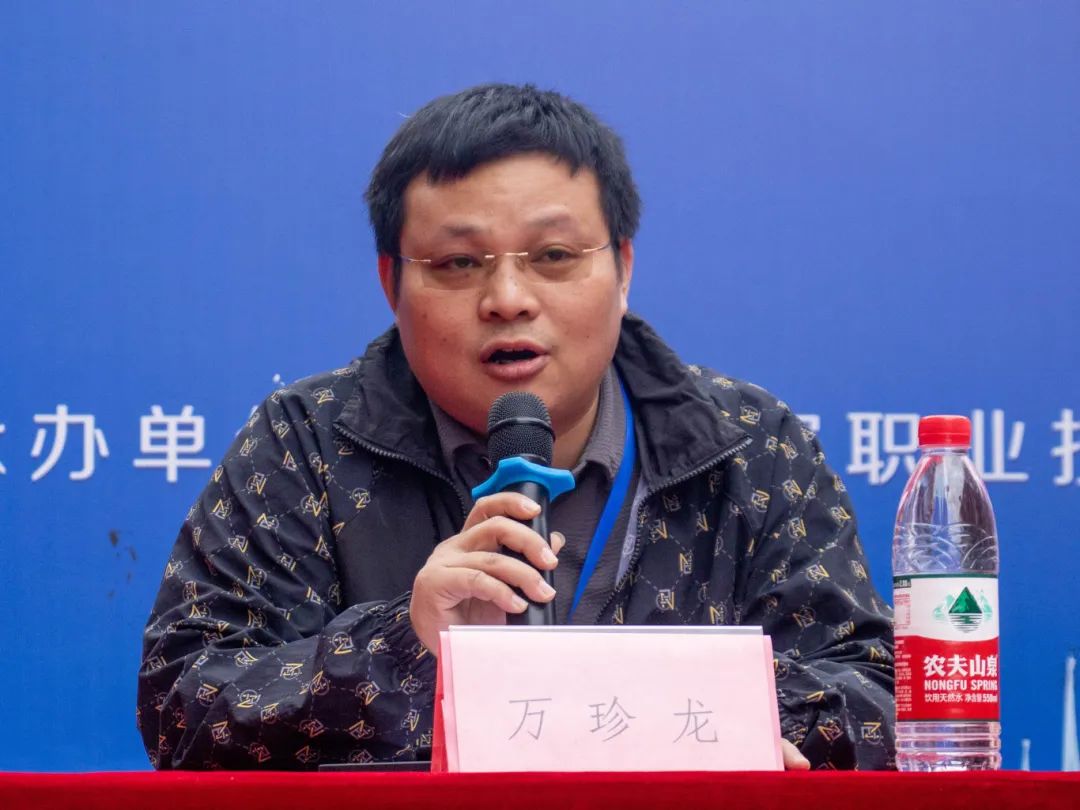 随后,优秀校友、企业代表万珍龙发表了讲话。他分享了自己在职业生涯中的宝贵经验,鼓励同学们要勇于挑战自我,不断提升自己的综合素质,同时也表达了对母校的感激之情。紧接着,学生代表学生会主席田彦荣进行了发言。他鼓励同学们要珍惜这次机会,勇敢地迈出第一步,积极展示自己的实力,实现自己的人生价值,为社会的发展做出更大的贡献。