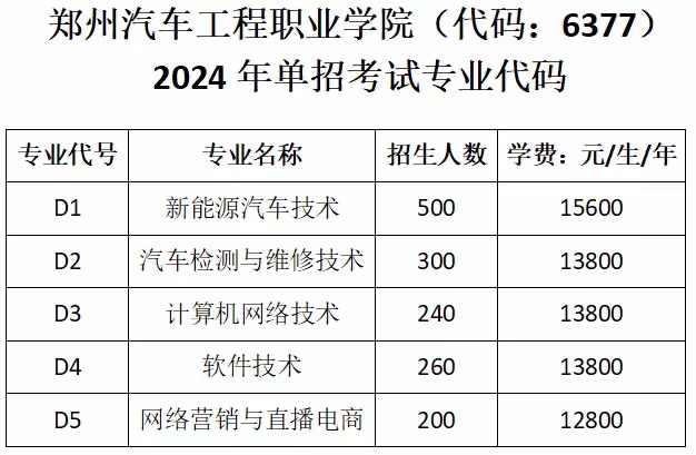 进入单招志愿的填报界面。输入院校代码《6377》,系统自动显示学校的名称。然后输入专业代号,系统自动显示专业,确认无误后保存郑州汽车工程职业学院招生代码及专业代号,如下图:
