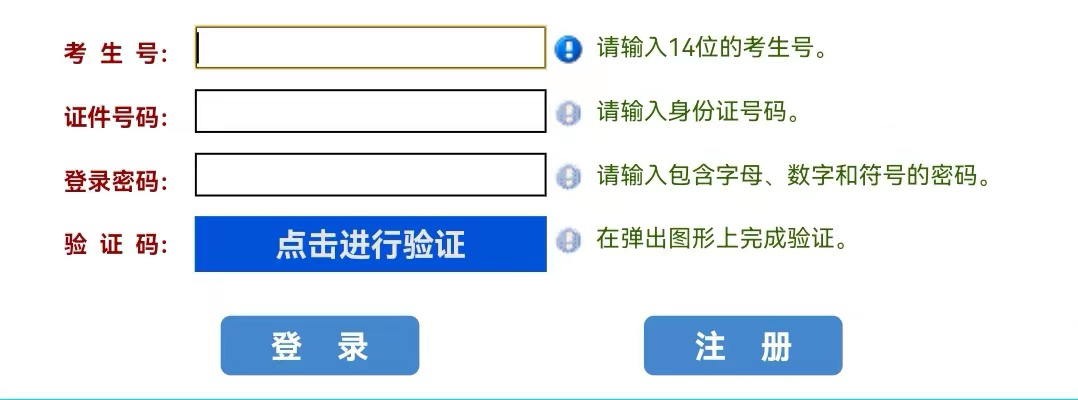 在考生登录区域输入考生的考生号、身份证号、登陆密码和验证码,点击登录。