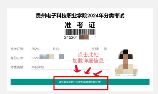 二、考试前准备1.明确自身考试资格。考生可在学校招生网站(贵州电子科技职业学院招生网 https://zsjy.gzdzxy.cn/)“招生公告”中查询符合录取资格的名单。2.打印准考证。我院2024年分类考试招生职业技能(适应性)测试准考证领取,采取网上打印方式。请各位考生于2024年3月22日登录以下网址http://47.112.28.159:8080/gzdzkjzy/,输入身份证号、姓名、图形验证码即可打印准考证。