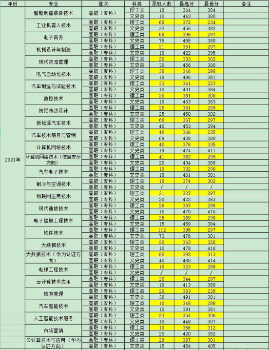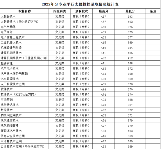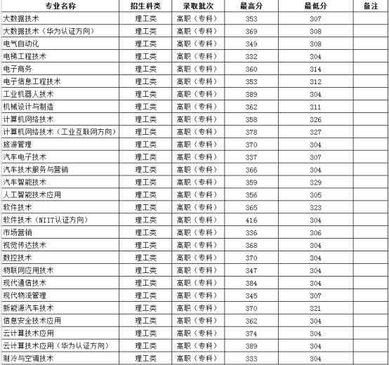 贵州电子科技职业学院近三年分专业录取分数线