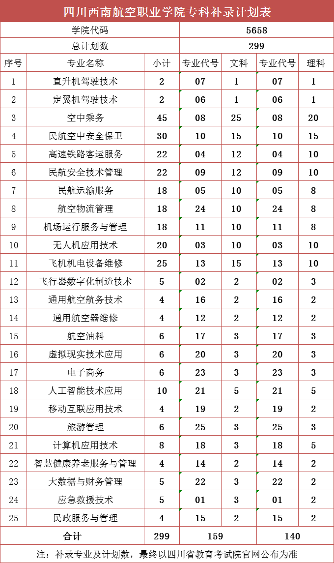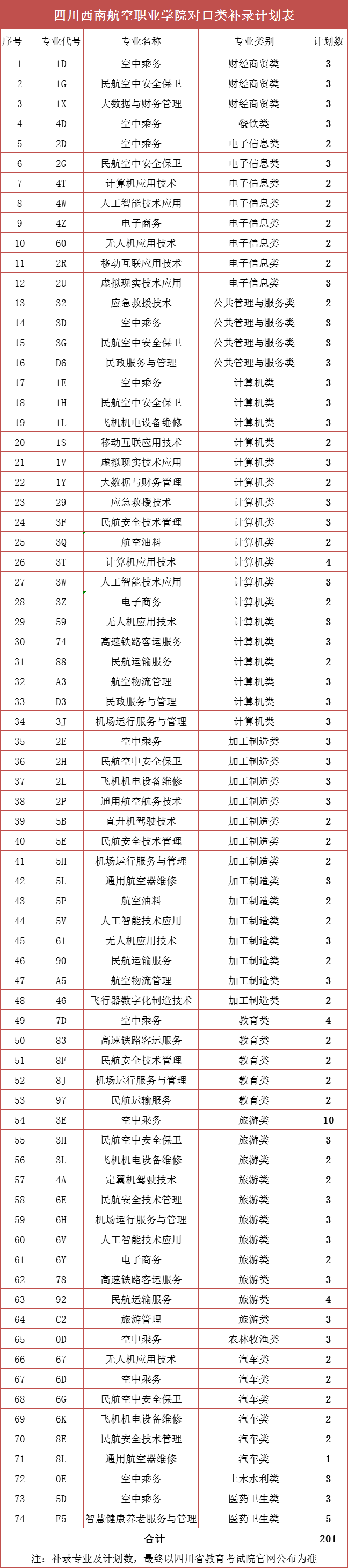 为满足广大考生的就读需求,根据《四川省教育考试院关于做好2022年普通高等学校专科层次补录工作的通知》,四川西南航空职业学院将开展补录工作,现就有关事宜公告如下: