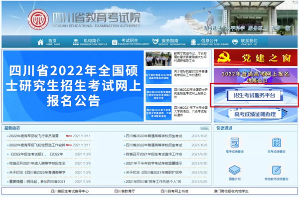 登录四川省教育考试院官网(https://www.sceea.cn),进入以后点击“招生考试服务平台”。