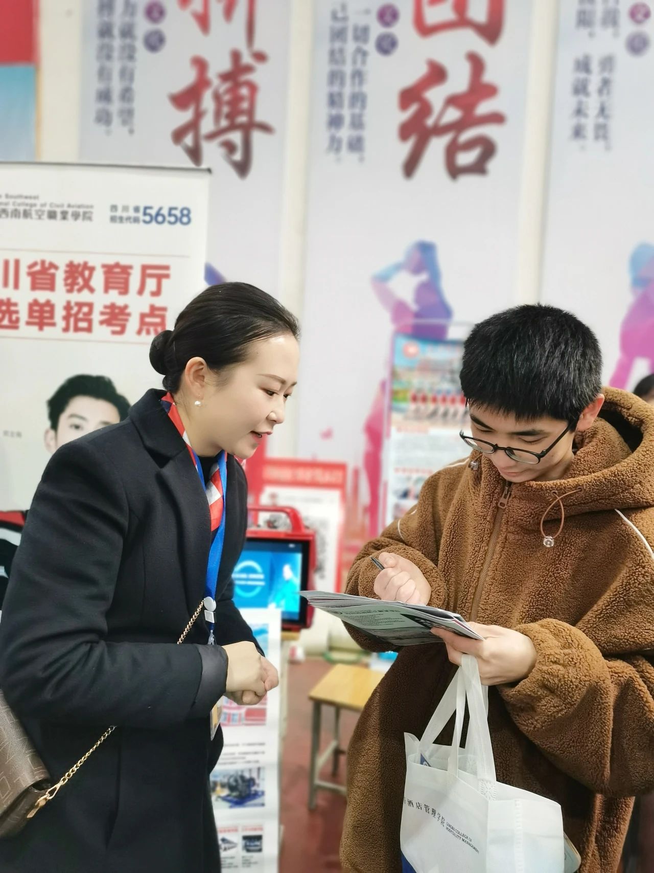 在招生巡展中,通过面对面交流,我院招生老师为广大学子分享了西南航院2024年最详实的招生信息,对于咨询考生所提出的问题做出耐心细致的解答、帮助在场考生及时准确地了解到今年我院招生政策。