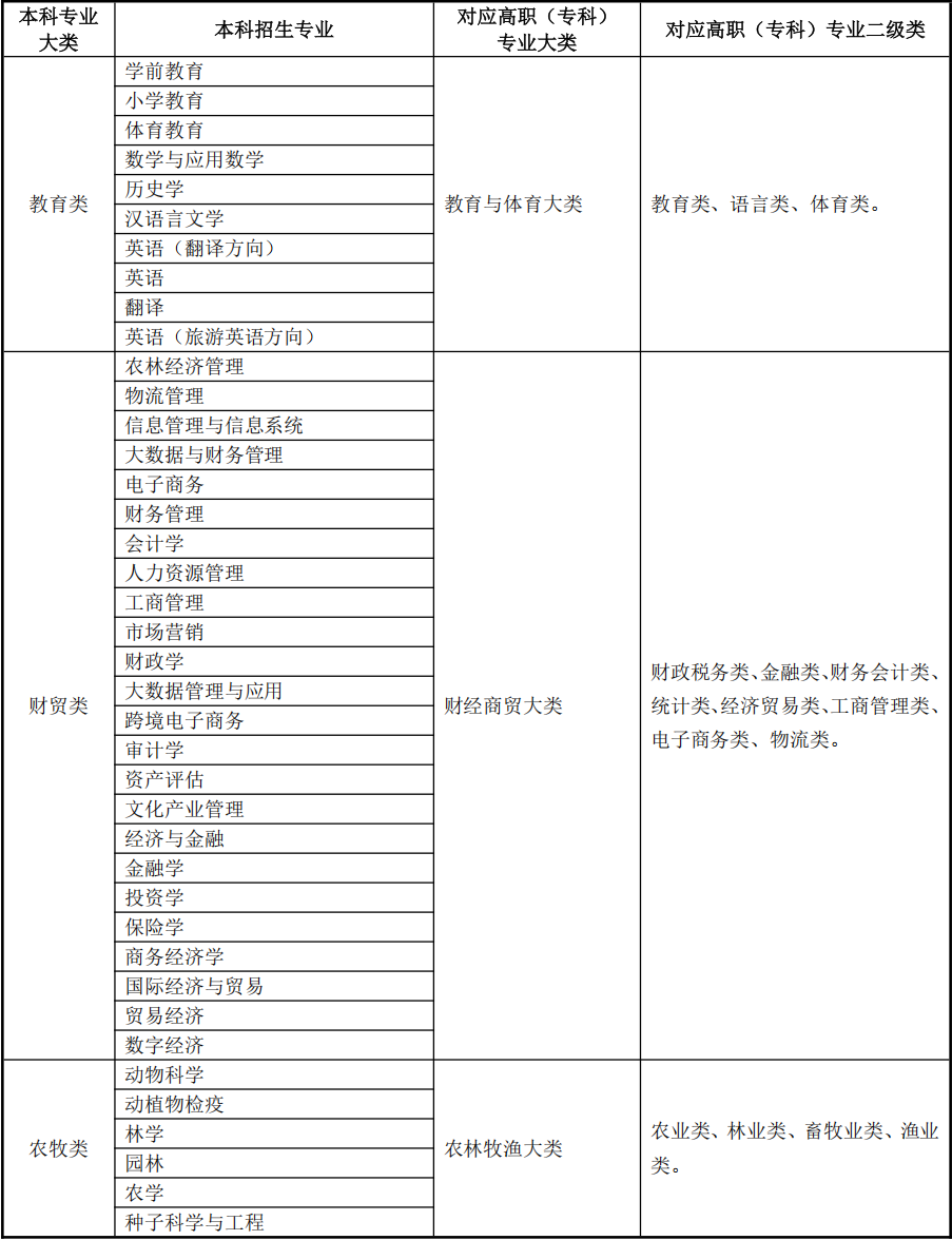 (二)招生专业。招生院校按照教育部《普通高等学校本科专业目录(2024年)》和《职业教育专业目录(2021年)》确定拟招收的本科(含职业本科)二级专业。