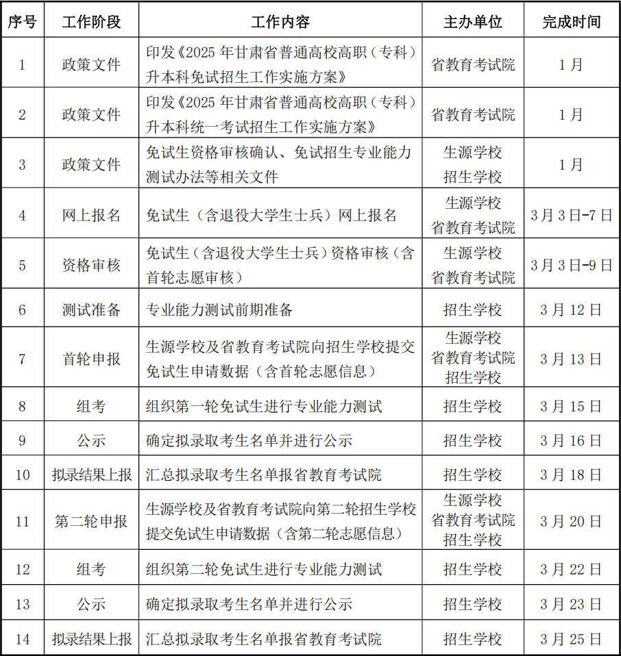 1.2025年甘肃省普通高校高职(专科)升本科免试招生工作进程表