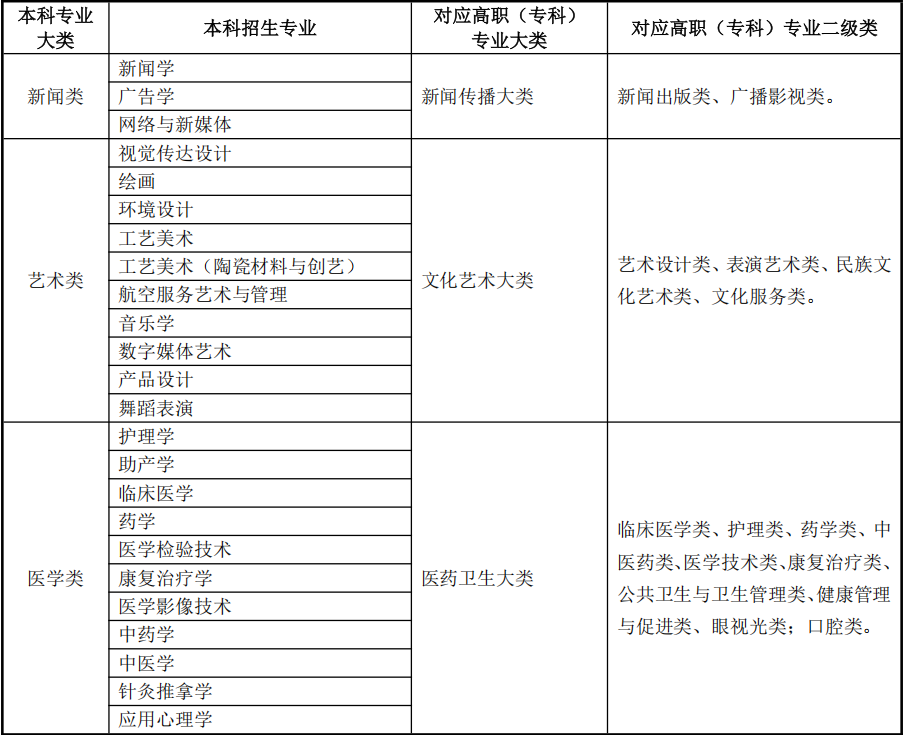 2.报考医学类本科专业时,对高职(专科)专业相同或相近的具体要求:
