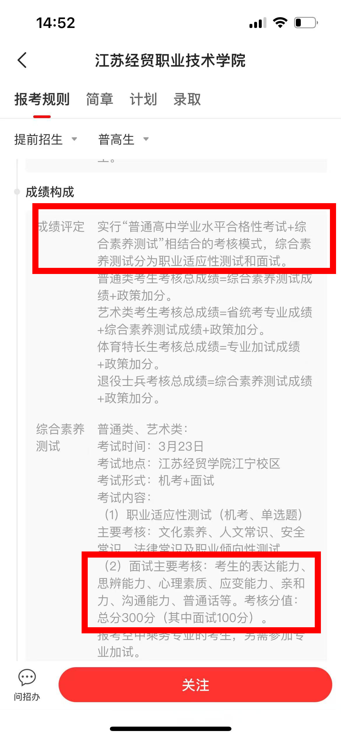 江苏省高职提前招生院校有80多所,一部分院校未设置面试,而另一部分则包含了面试环节。根据上述表格中院校2024的考核方法,可以看出“面试”环节对评估学生综合素质至关重要。面试能展现学生学业、专业能力,同时考察沟通、应变及团队精神,对学生未来学习和职业发展极为关键。