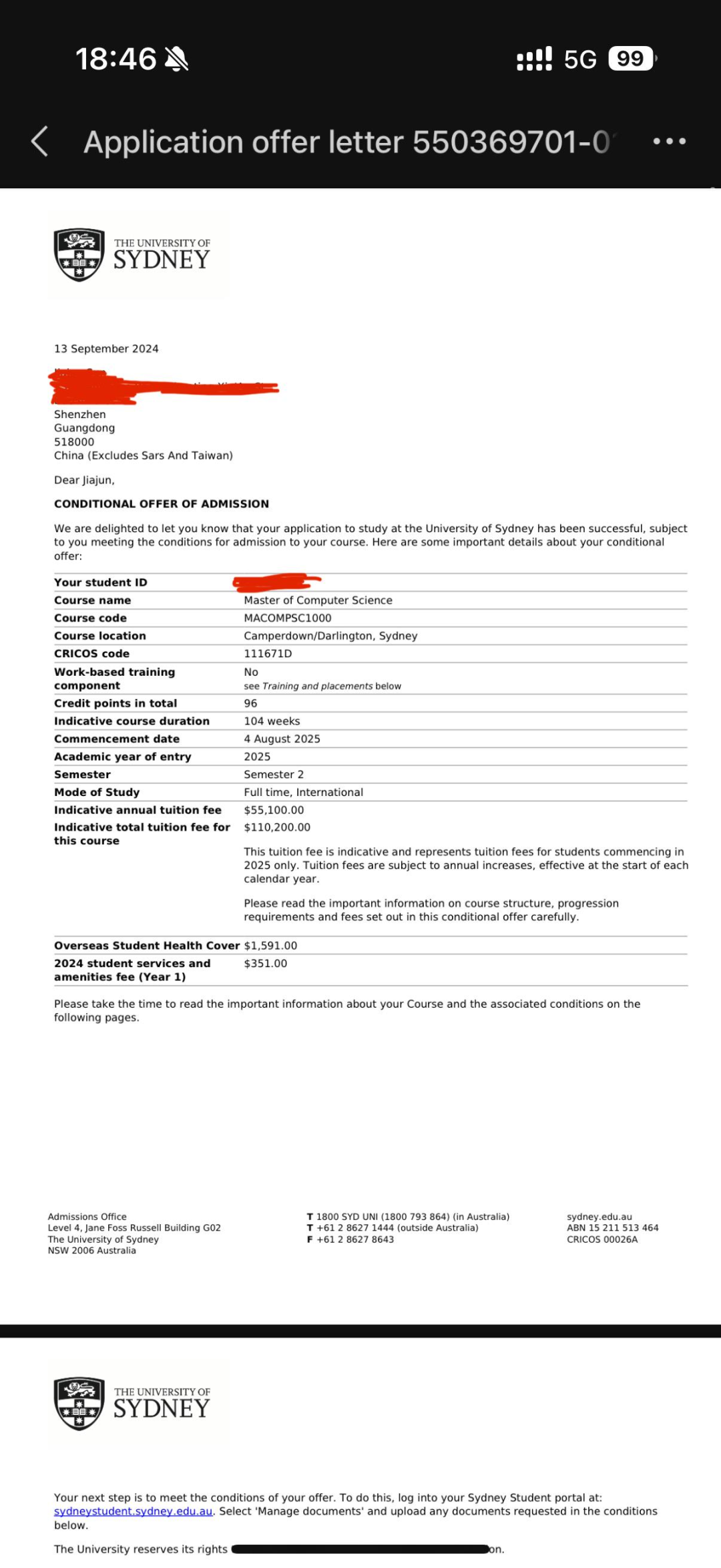 悉尼大学,这所世界排名前20的顶尖学府,成为了孙嘉骏的留学目的地。他选择了计算机专业,这不仅与他的本科专业紧密相关,更是为了未来的职业发展铺平道路。悉尼大学在计算机科学领域的卓越声誉和丰富资源,让他毫不犹豫地做出了这个决定。