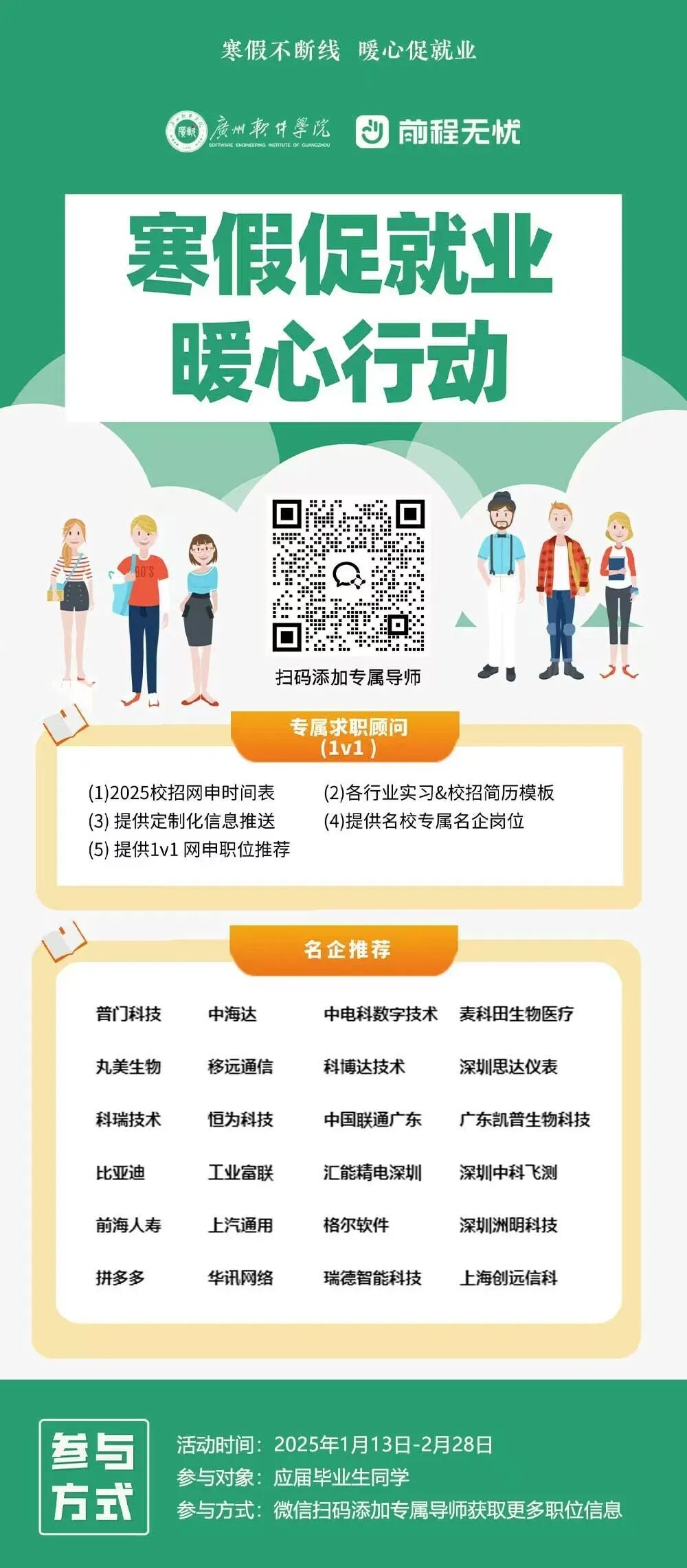 为贯彻落实党中央、国务院关于做好高校毕业生就业工作的决策部署,充分利用寒假窗口期,促进毕业生高质量就业,我校联合前程无忧举办“寒假促就业暖心行动”系列公益活动。