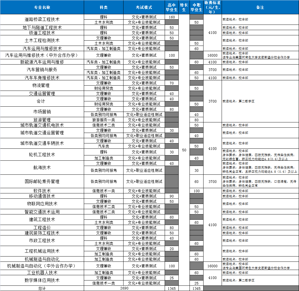 (一)招生计划2690名(含特长生50名)。其中:普高类1345名,中职类1345名。