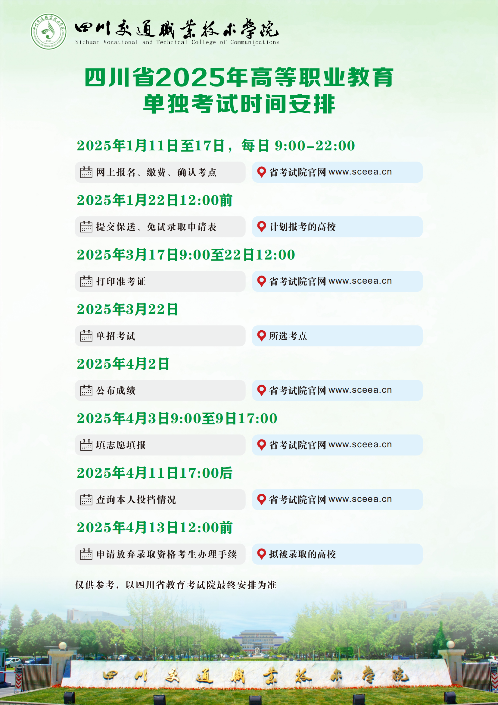 ​四川省2025年高等职业教育单独考试时间安排出炉了!