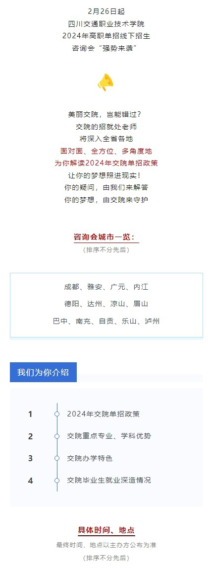 招生老师来现场了!川交职院将开展2024年高职单招线下招生咨询会