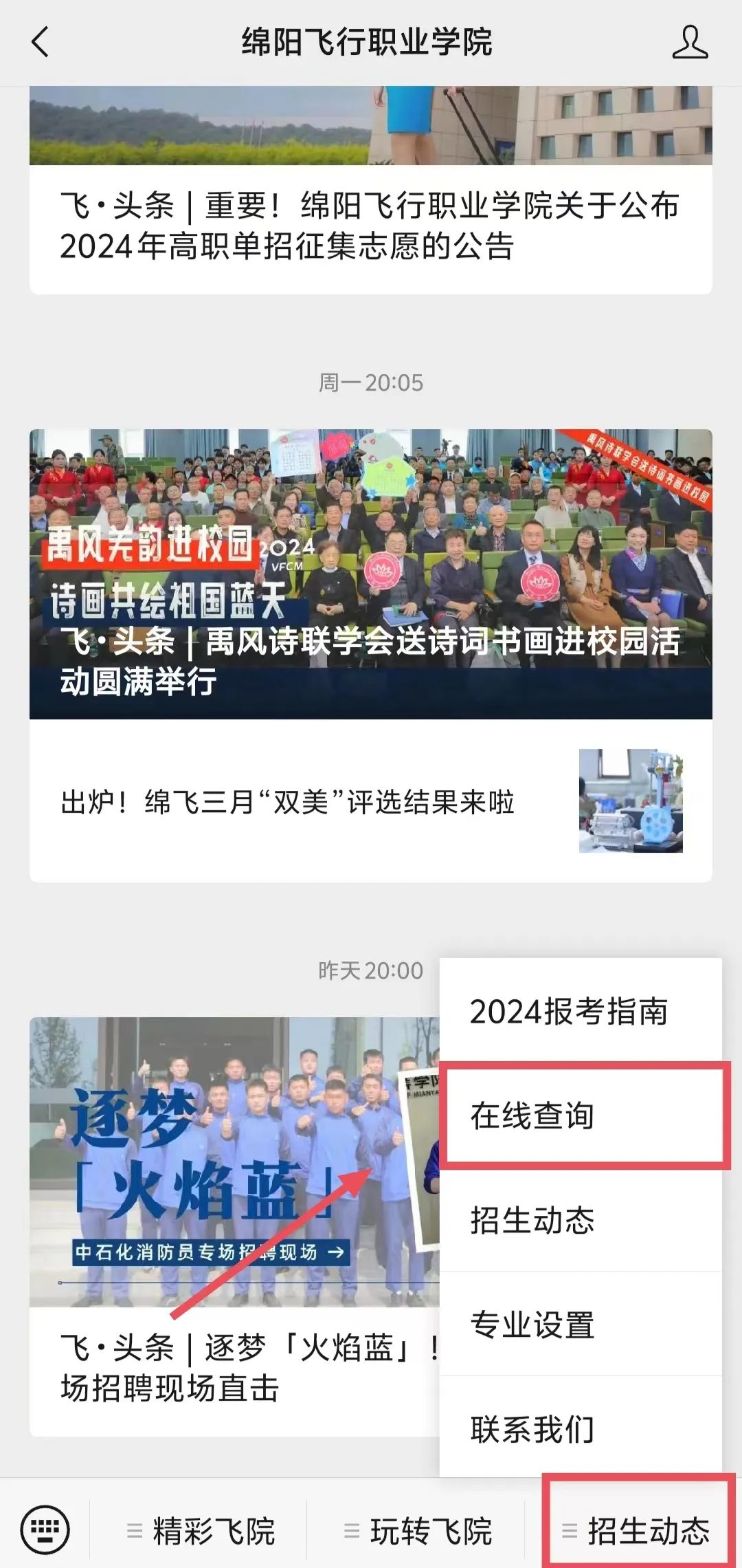 2. 点击右下角“招生动态”专栏,选择“在线查询”;