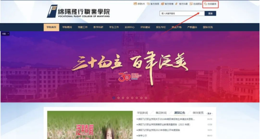 1. 进入绵阳飞行职业学院官网(https://www.topflying.com.cn/);